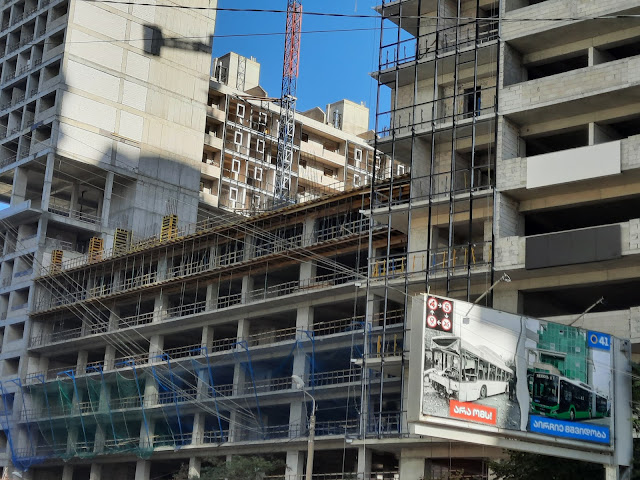 ამავე სადარბაზოებისთღვის, ქვედა სართულებიდან, პარალელურად მიმდინარეობს აივნებისა და შიდა ტიხრების ამოშენება:
